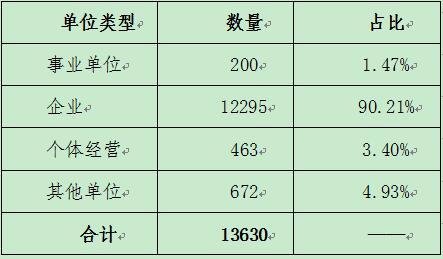 其中,用人单位中企业数量比上年同期减少60家,同比微跌0.49%。