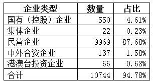 2016年三季度,通过广西人才网联系统招聘的用人单位共11375家,同比小幅增长5.68%,其单位性质分布见下表:
