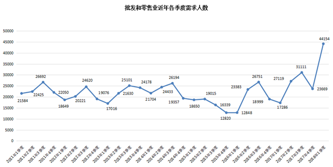 (二)批发和零售业人才需求突破性增长,突破4万大关