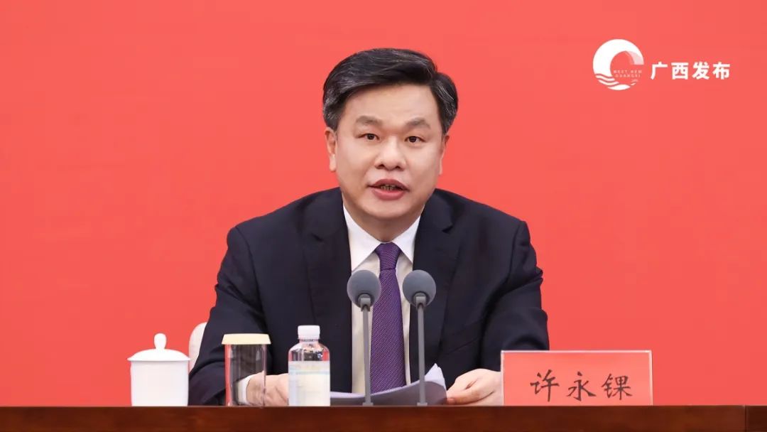 今天上午,中国共产党广西壮族自治区第十二届委员会第九次全体会议暨经济工作会议在南宁胜利闭幕。下午,我们专门邀请到自治区党委常委、自治区常务副主席许永锞先生,自治区党委常委、秘书长、自治区党委新闻发言人周异决先生,共同出席新闻发布会,介绍大会的召开情况和取得的重要成果,全面介绍我区深入贯彻落实党的二十大和二十届二中、三中全会精神及中央经济工作会议精神,深入贯彻落实习近平总书记关于广西工作论述的重要要求,奋力谱写中国式现代化广西篇章取得的新进展新成效。我是本场发布会的主持人,自治区党委常委、宣传部部长、自治区党委新闻发言人陈奕君。